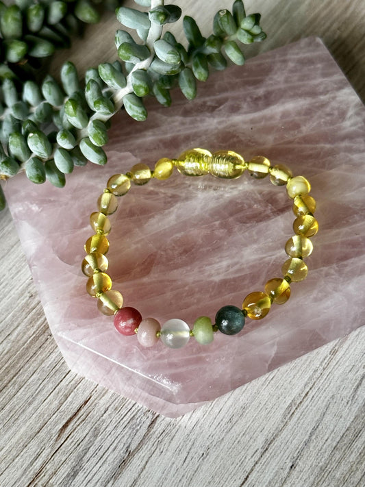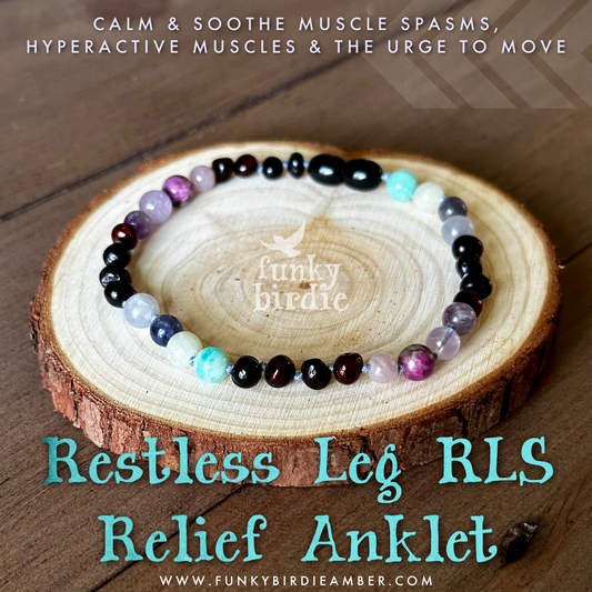 Baltic amber & crystal teething anklets to soothe teething pain for little ones & for adults to relieve arthritis, RLS, knee pain & more!
