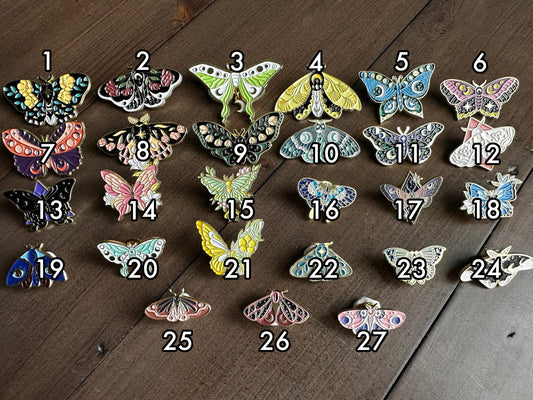 Luna Moth & Butterfly Enamel Pins -- Choose Your Own