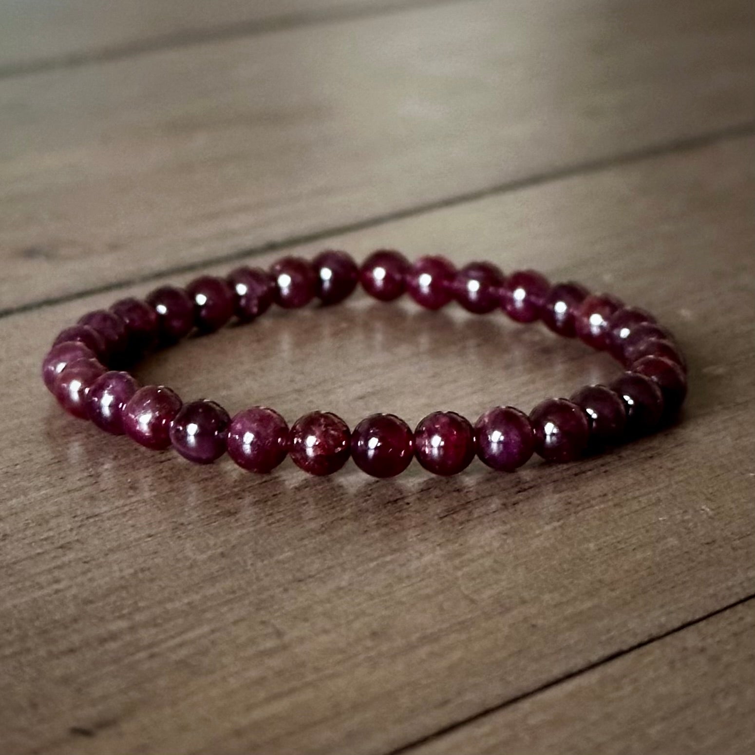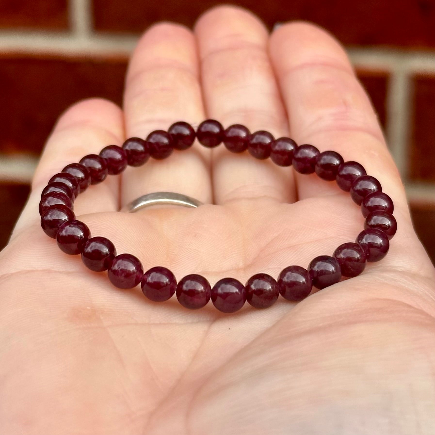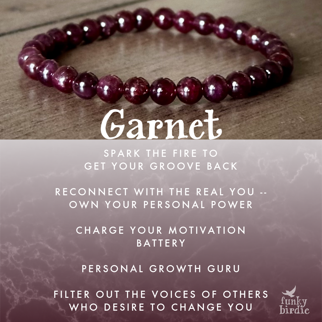 Garnet Single Stone Stretchy Stacker bracelet is strung on stretch cord & does not require a clasp. Beads measure approx. 6mm. Due to the natural materials used, your piece will differ slightly than what is pictured. Photos have been enlarged to show detail. Colors shown may vary due to your monitor settings. This listing is for a one bracelet, other items shown are photo props.