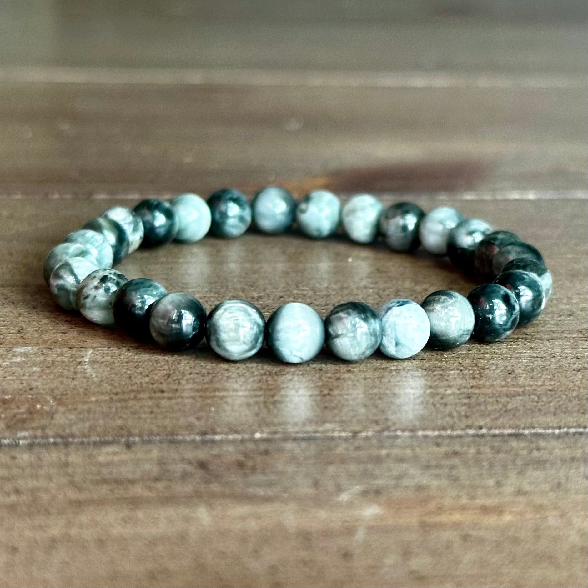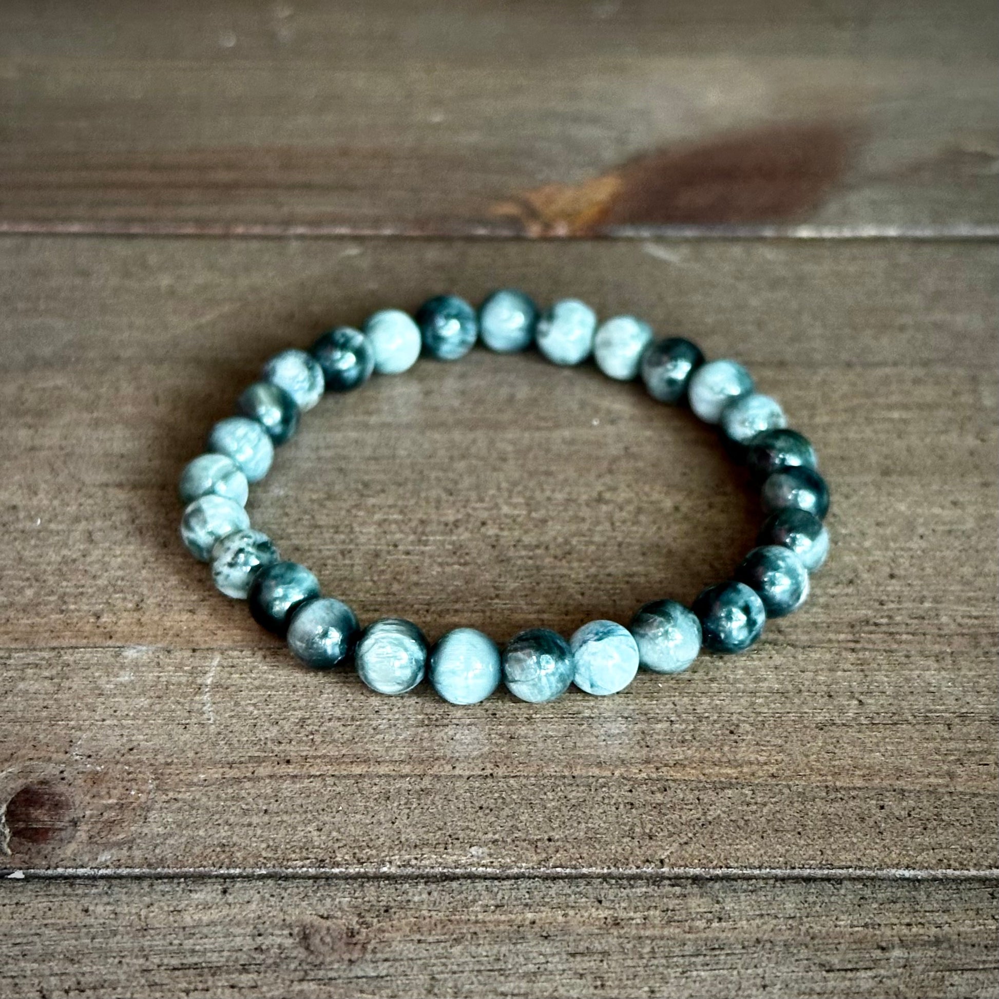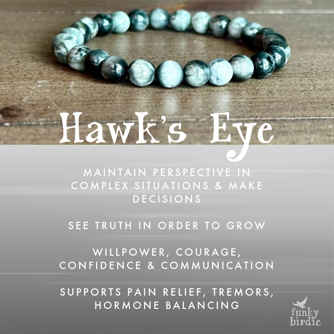 Hawk's Eye Single Stone Stretchy Stacker bracelet is strung on stretch cord & does not require a clasp. Beads measure approx. 6mm. Due to the natural materials used, your piece will differ slightly than what is pictured. Photos have been enlarged to show detail. Colors shown may vary due to your monitor settings. This listing is for a one bracelet, other items shown are photo props.