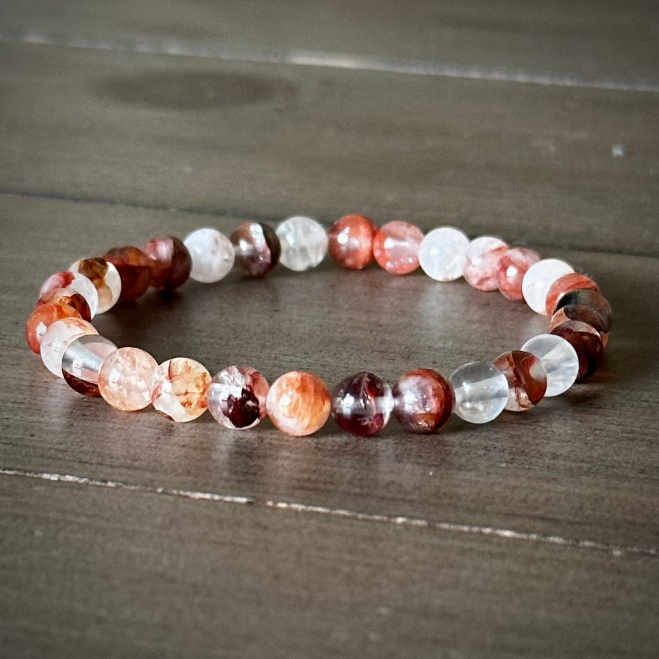 Combines the amplification of quartz & the grounding/stabilizing energy of hematite in painterly banding that truly sets a fire in your soul!
