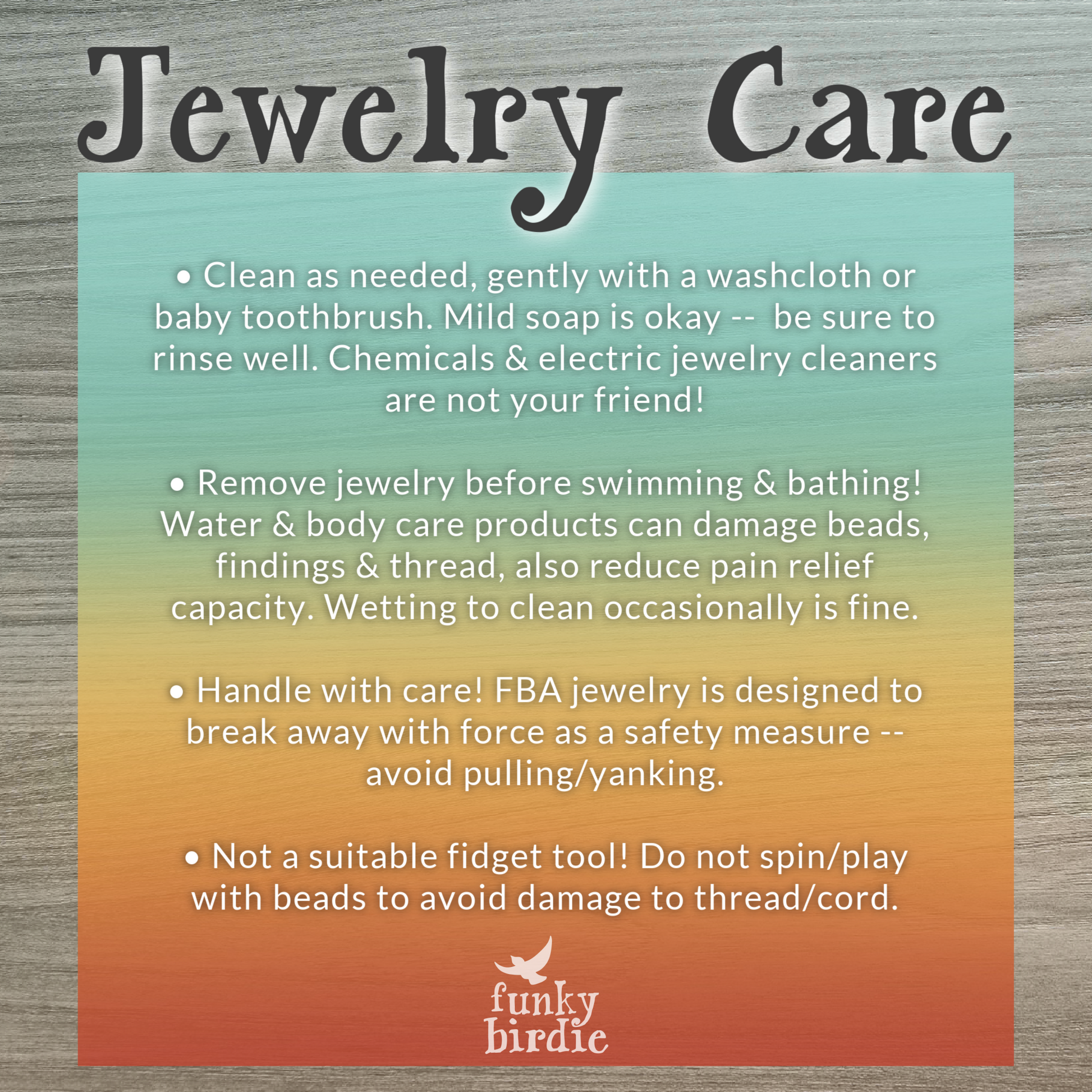 Got questions about sizing, how to care for your FBA jewelry, or other frequently asked questions? Check out my FAQ!
