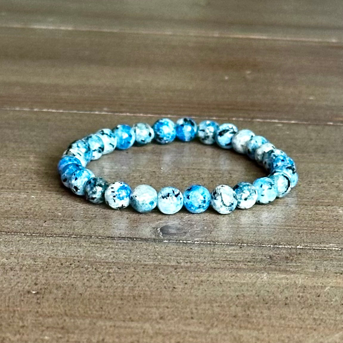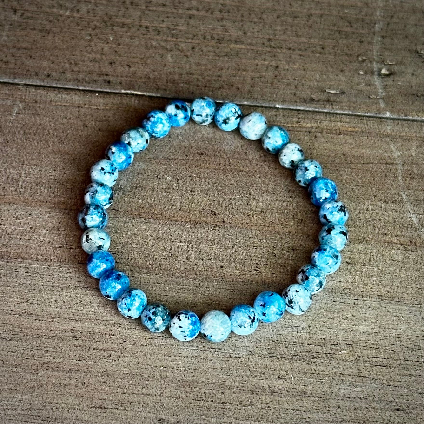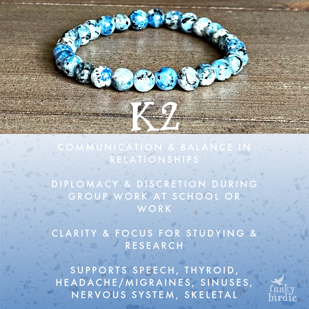 K2 Single Stone Stretchy Stacker bracelet is strung on stretch cord & does not require a clasp. Beads measure approx. 6mm. Due to the natural materials used, your piece will differ slightly than what is pictured. Photos have been enlarged to show detail. Colors shown may vary due to your monitor settings. This listing is for a one bracelet, other items shown are photo props.