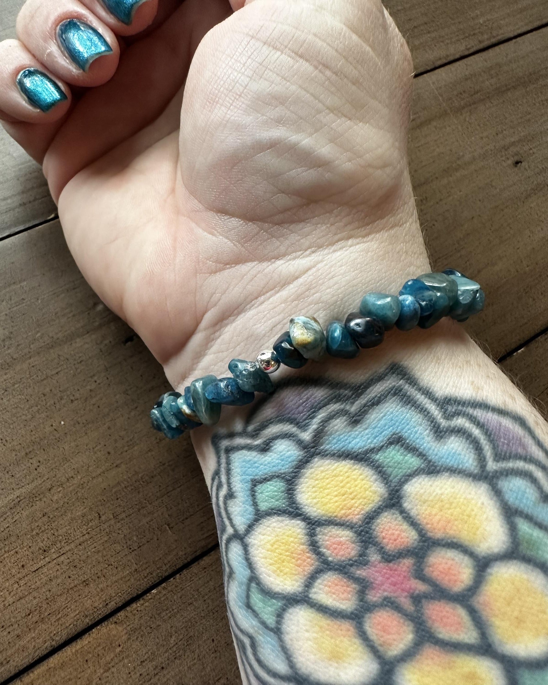 ✨With a silver plated hematite accent bead these babies are a super affordable way to get LOTS of juicy, rich Apatite on YOUR bod 💪