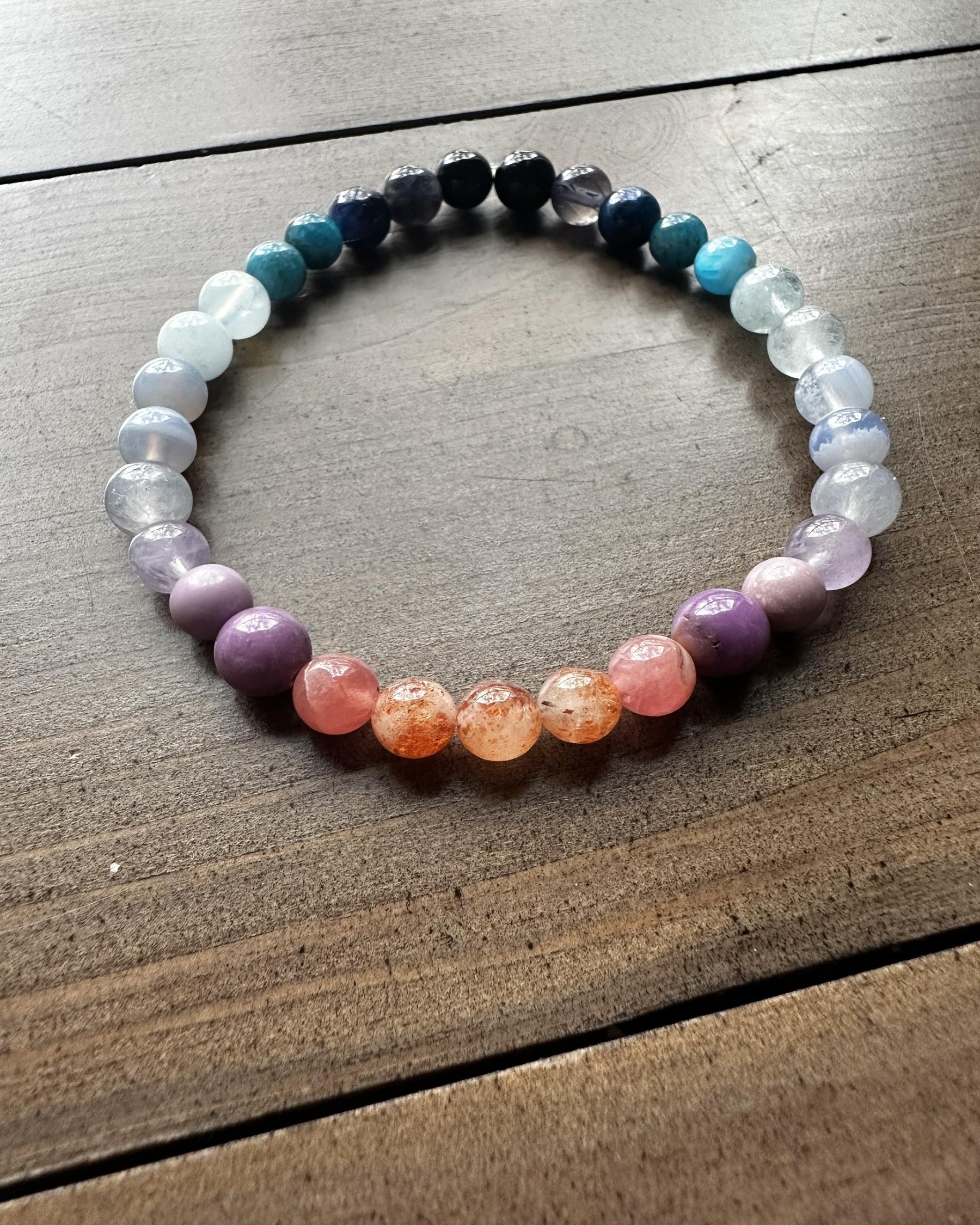 🌅 ✨For this beauty only the highest quality golden flash sunstone would do, fading cooly into pale violets, then soft and rich blues and finally a deep, dusky purple & black finish.